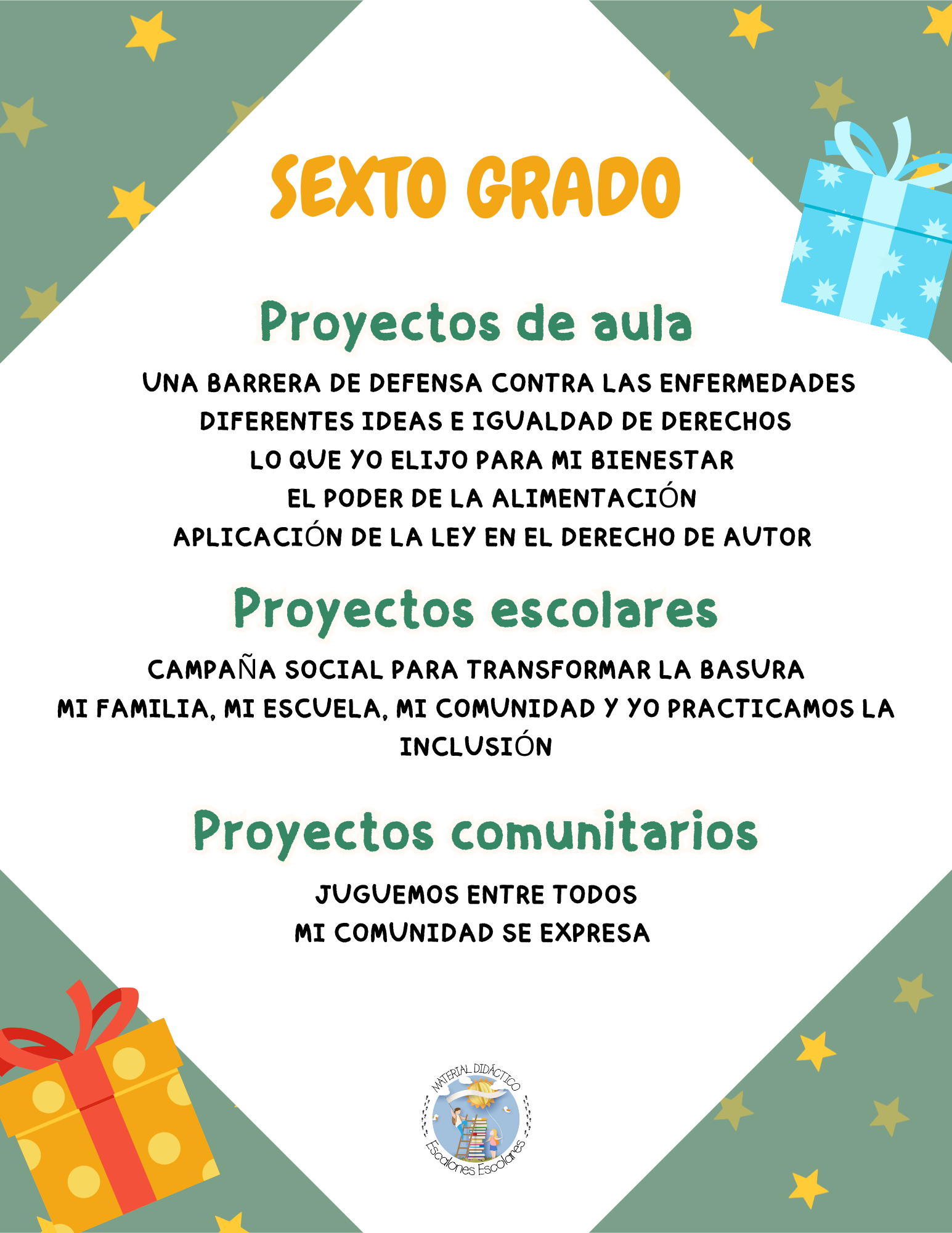 Planeación y cuadernillo de actividades de proyectos, uno de cada campo formativo.
